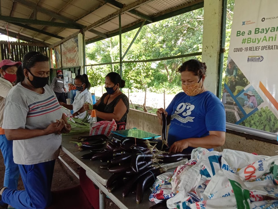 Members of the Inang Kalikasan Agriculture Cooperative prepare vegetables to be distributed to beneficiary communities under Project #BuyAni
